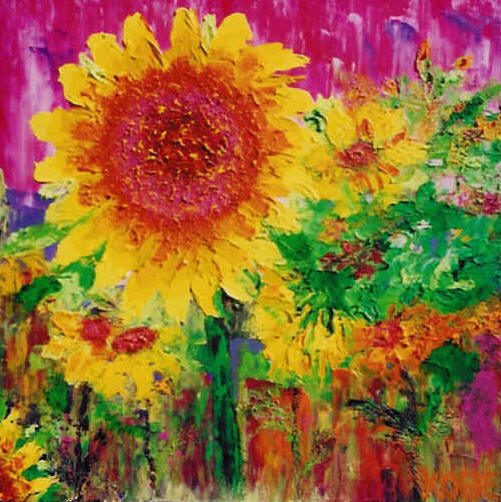 This acrylic painting shows a flower with detail by focusing on the flowers texture and colour.
